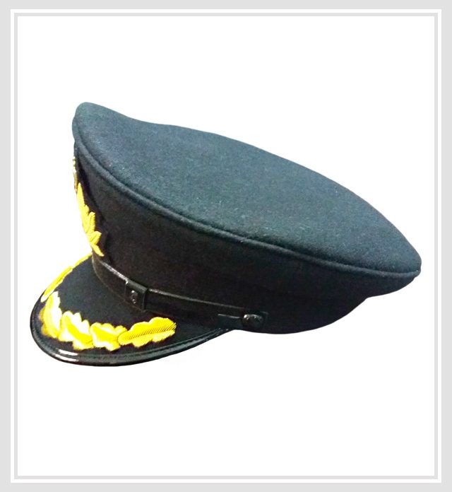 Supreme quality copy of a WW2 Merchant Navy Captains cap Shiny Black Peak with Gold Oak Leaf Merchant Navy Hand Embroidered Badge.